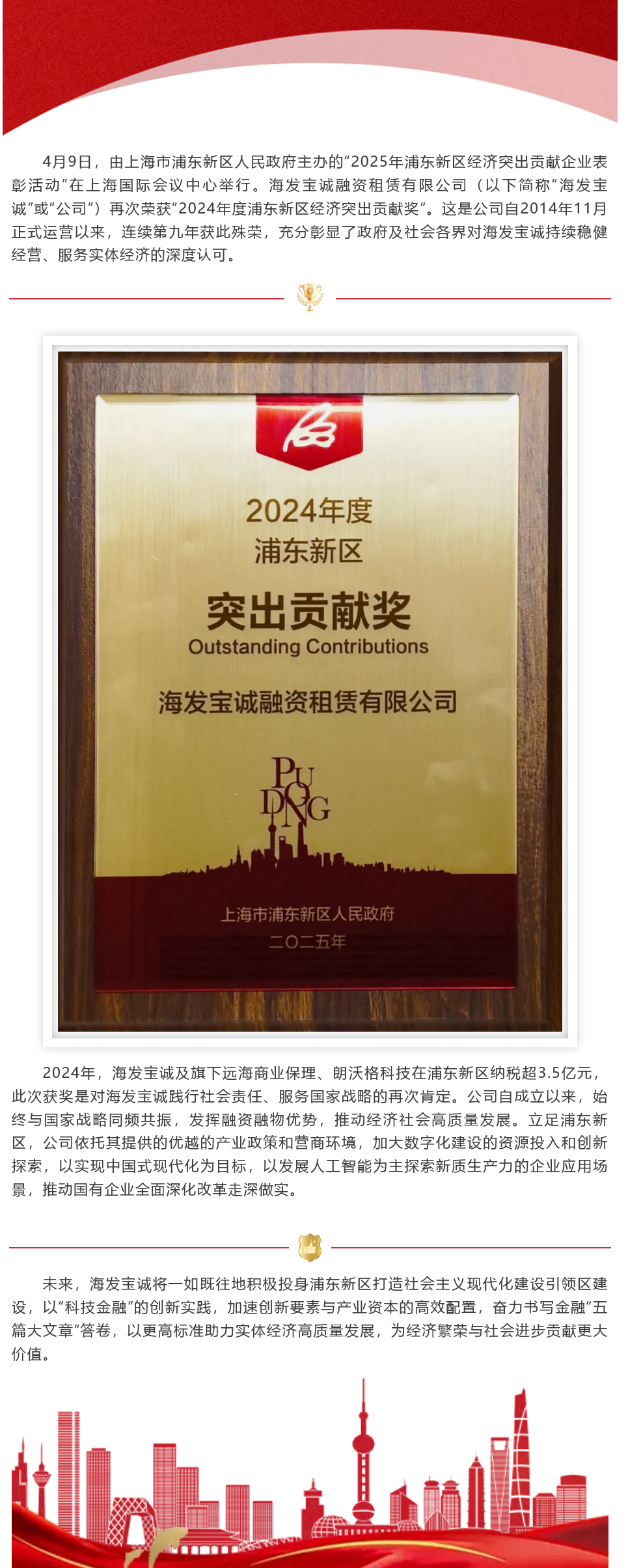 海發寶誠再次榮獲浦東新區經濟突出貢獻...